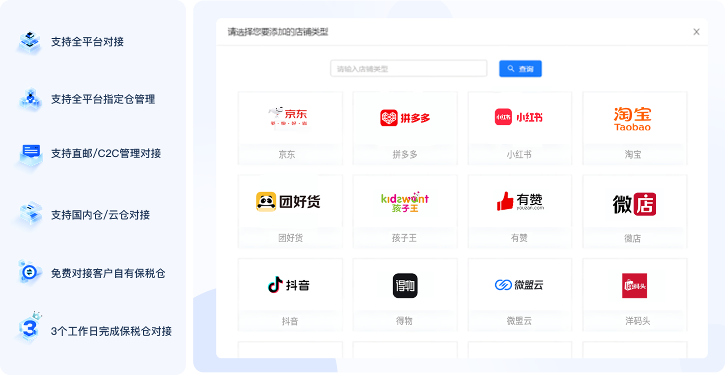 跨境云全国合作开发40+保税仓, 保税仓系统针对客户的平台布局、商品类别、销售模式、物流运输等不同需求,智能化匹配符合客户需要的优质保税仓,提供更加便捷高效的服务与业务